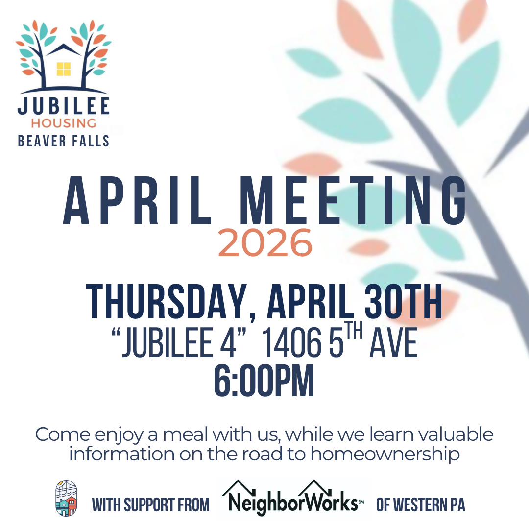 Jubilee Housing, a program of the Beaver Falls CDC, works in partnership with NeighborWorks of Western PA, to bring these meetings and resources to you!